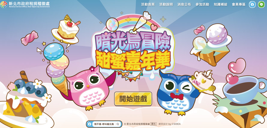 目標客群 所有民眾。 專案內容 RWD響應式網頁設計 / HTML5 / CSS3 / 互動遊戲設計 / 稅捐知識宣導…等。 設計理念 多種不同遊戲玩法融入宣導 , 簡單有趣又有主題性 , 讓玩家選擇自己喜歡的玩法獲得宣導品的獎勵